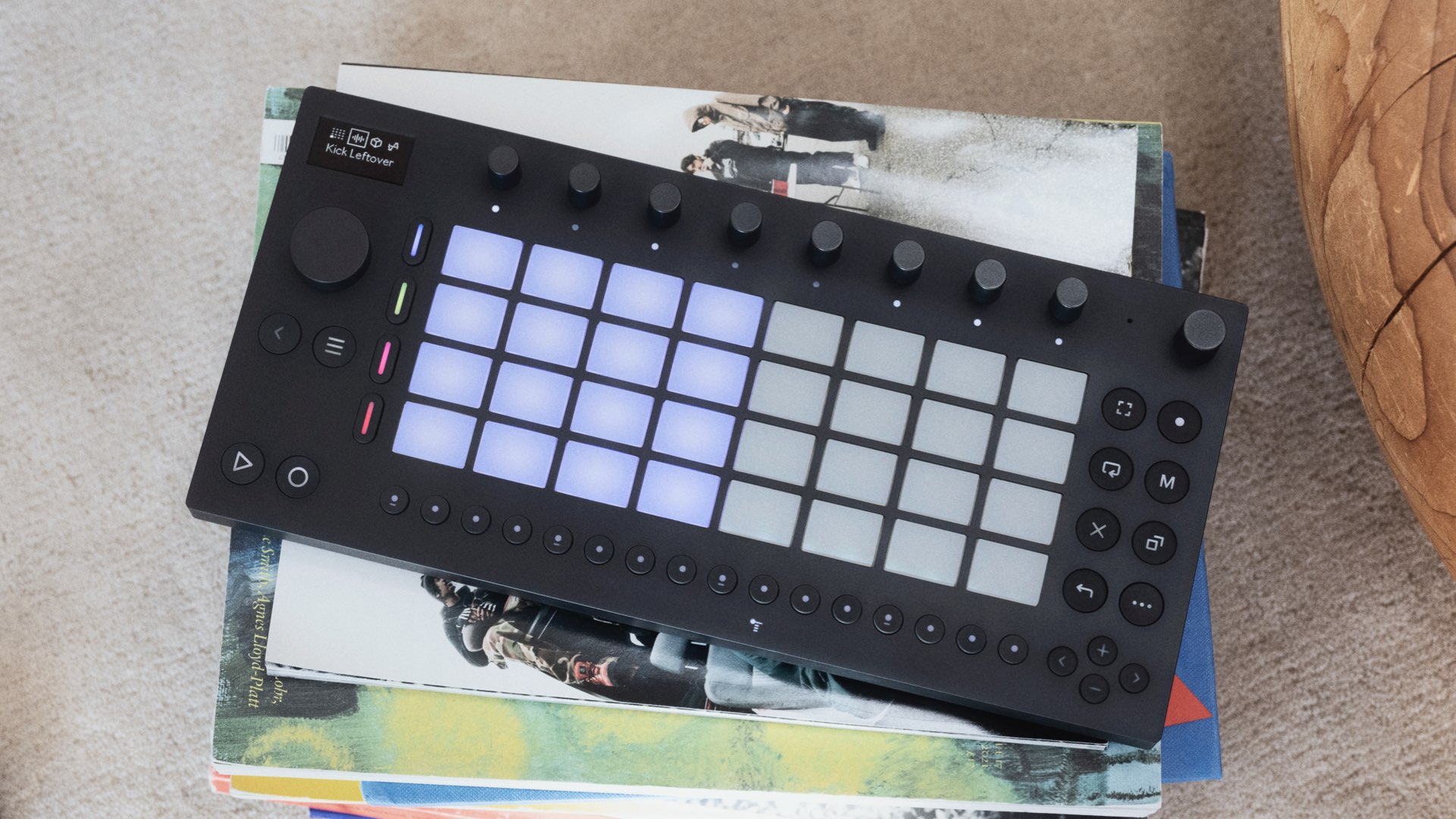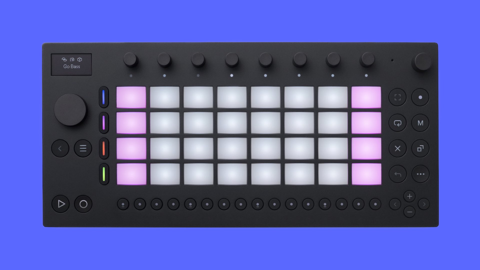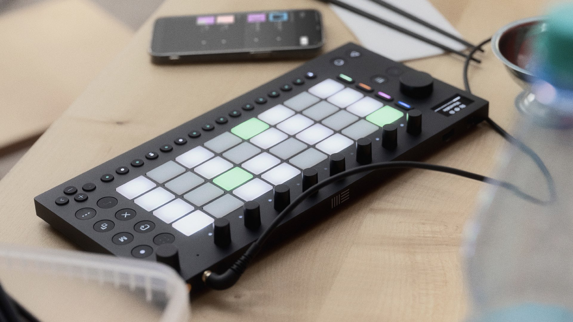 The hardware, powered by a modern ARM processor, consists of 32 velocity-sensitive polyphonic aftertouch pads, nine high-resolution encoders, a touch-sensitive, clickable jog wheel, and 16 backlit multifunctional buttons.