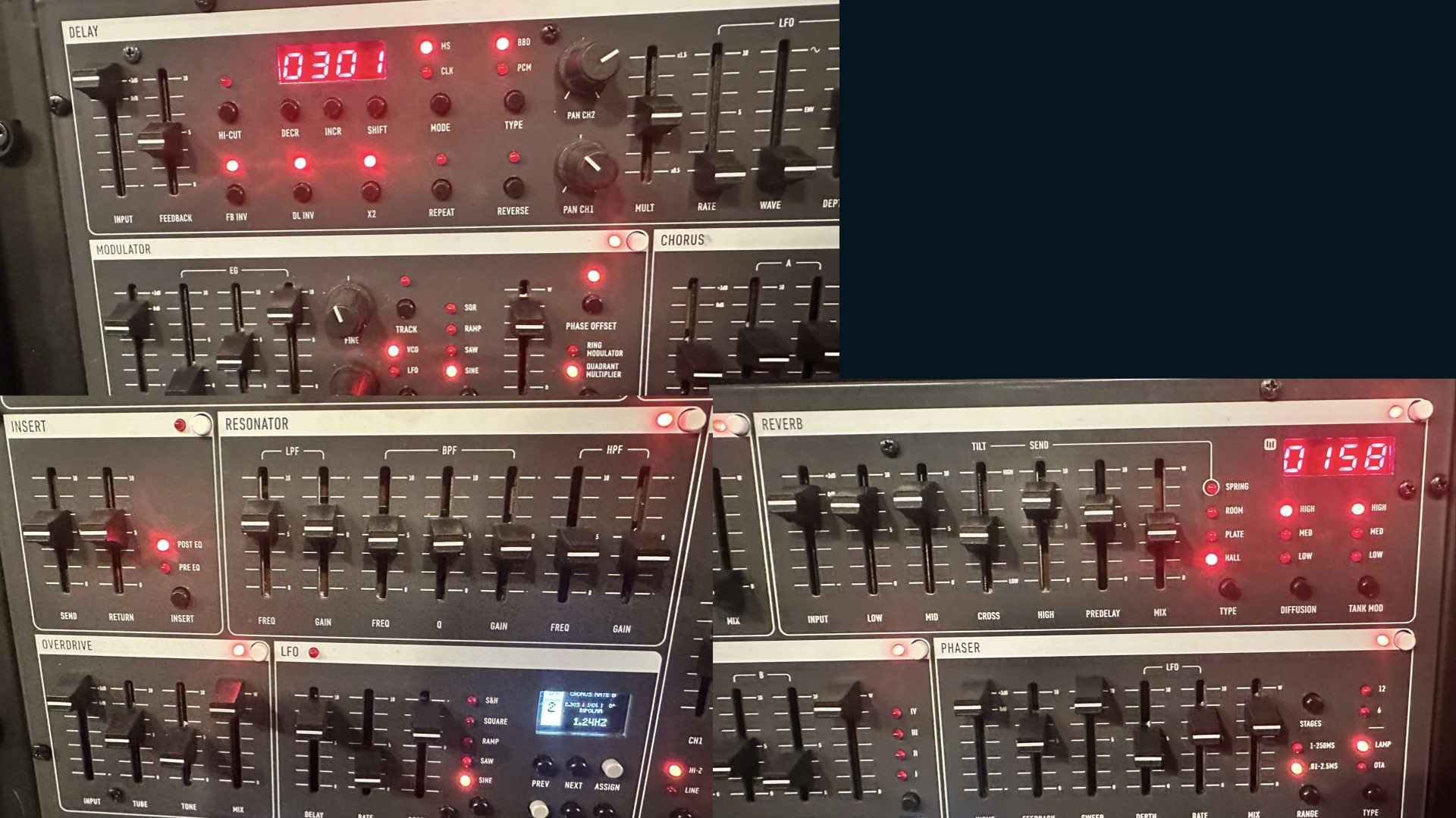 Flexible analog and digital effects routable in serial or parallel are at its core, making it a hybrid device. On the top left, you have two distinct delays in both analog and digital flavors.