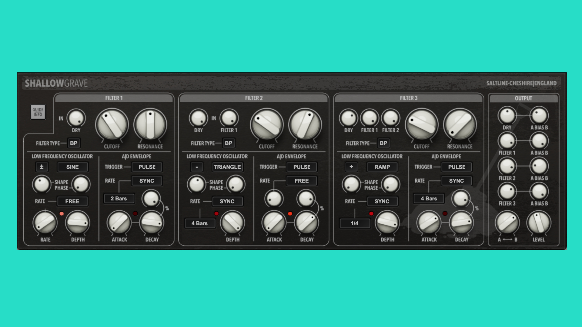 Shallow Grave is a filter plugin with a more unusual feature set. Unlike traditional filter plugins with one filter, Decadebridge Shallow Grave has three state-variable filters cascaded to a filter effect.