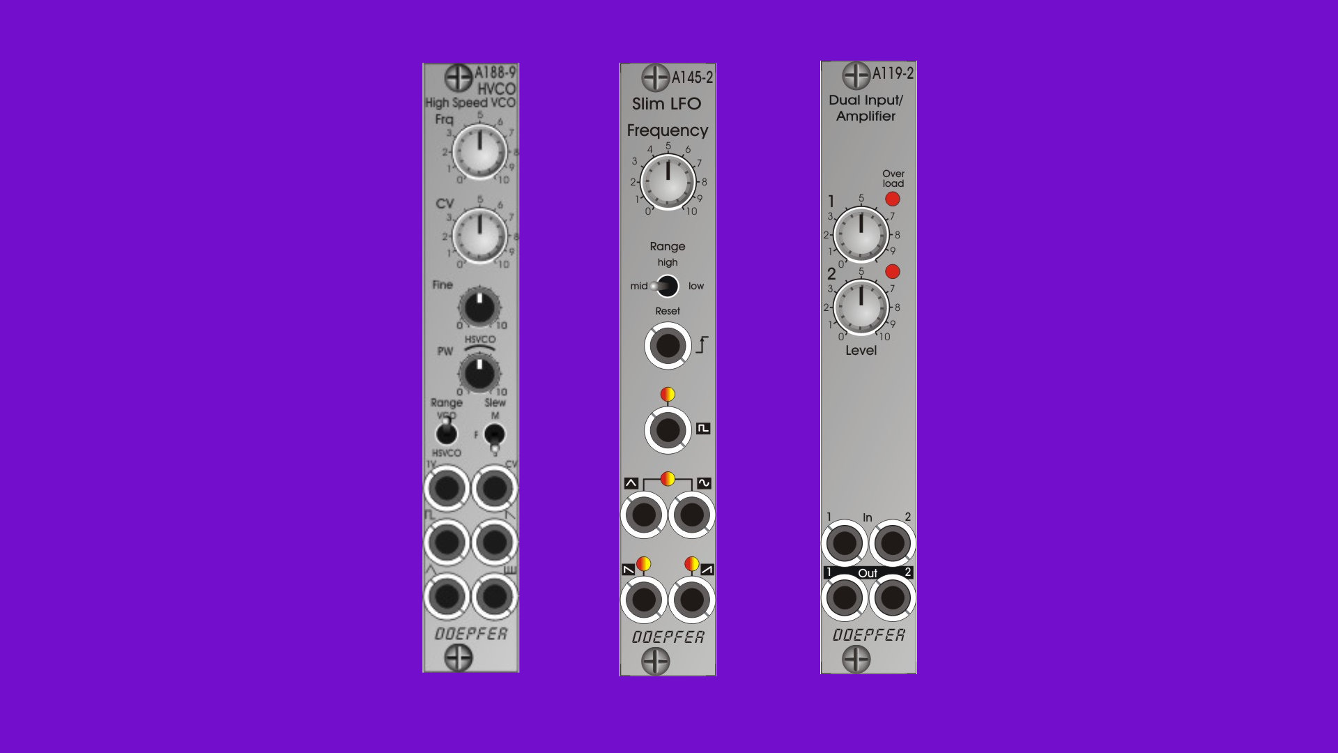 There are three more new Doepfer modules for Superbooth 2025. Already last year, Doepfer announced the A-188-9 VCO with a super-wide frequency range up to 500 kHz. It is intended to complement the A-188 BBD modules to create Karplus-Strong effects.