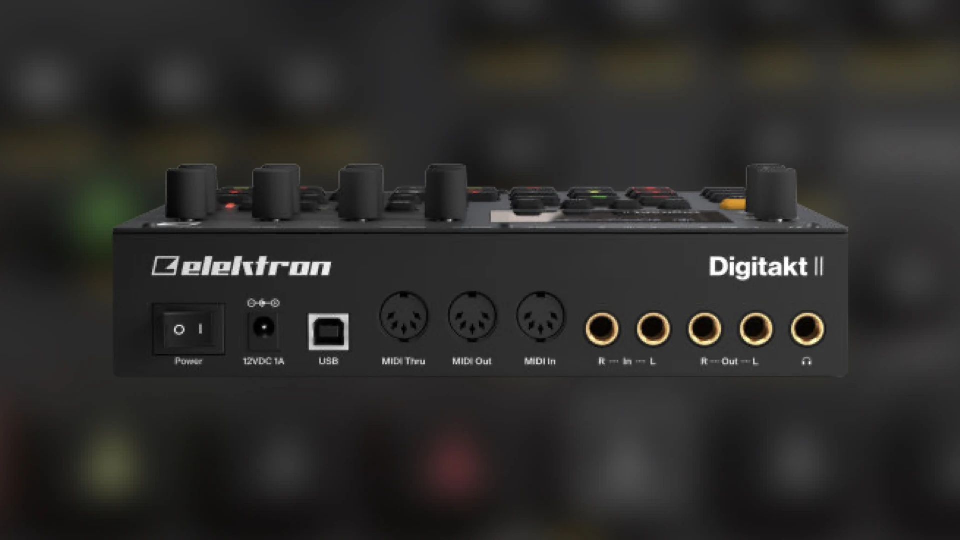 On the connection side, Digitakt II has a stereo input and stereo output on symmetrical 6.35mm sockets, MIDI in/out/thru sockets, USB port for data, including Overbridge, a power supply input, and a headphone socket.