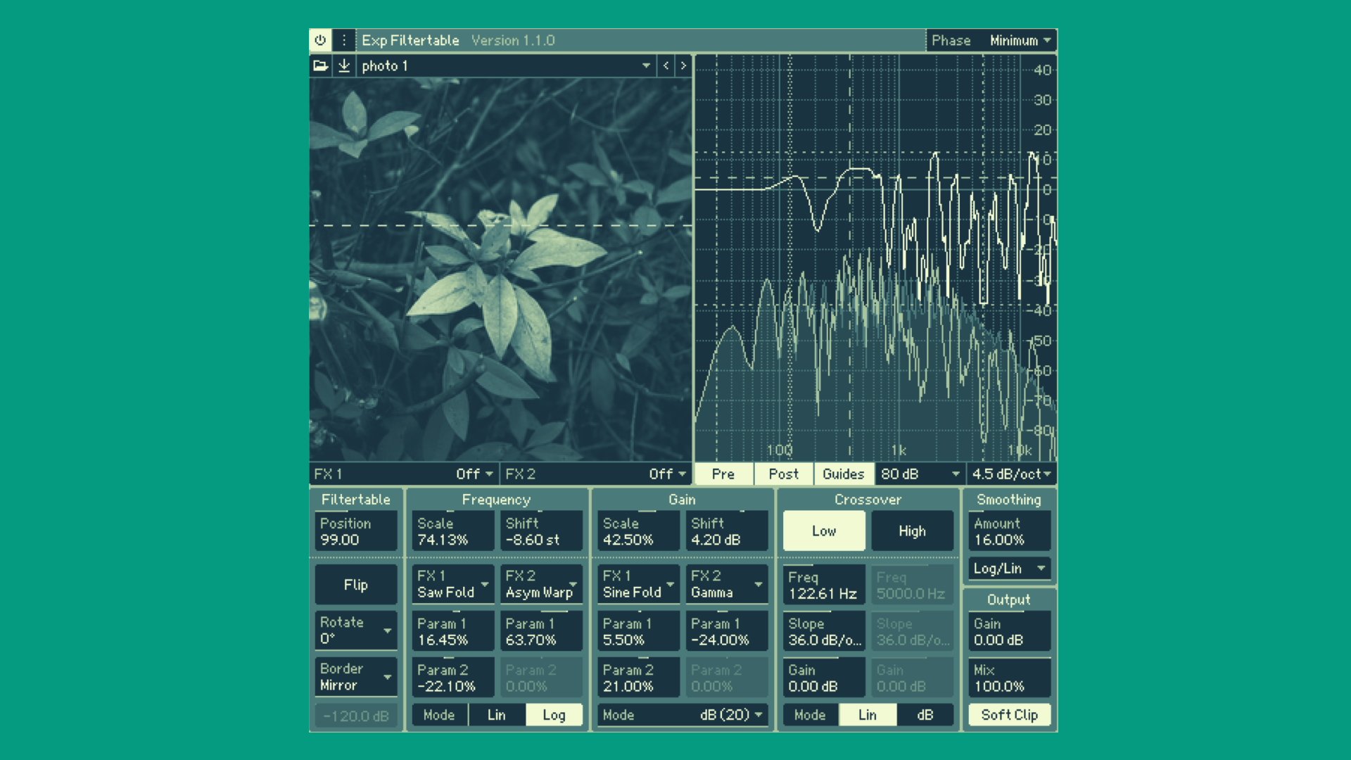 With the update 1.1.0 of Exp DSP Exp Filtertable, the developers also added an option to switch between linear and minimum phase. Not to forget, the interface is fully scalable and offers customizable fonts and color themes, including light and dark themes.
