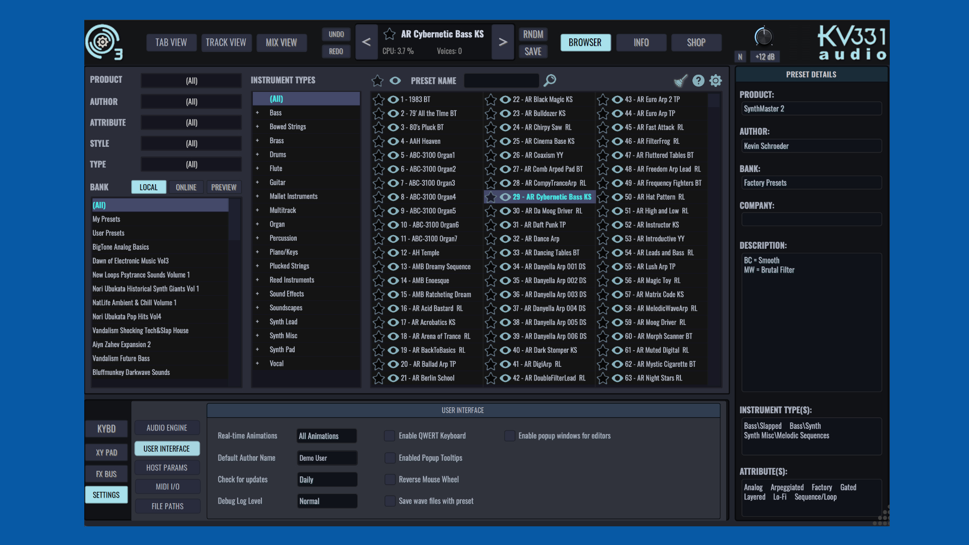 KV331 Audio Synthmaster 3: the developers have released update 3.4, introducing a new preset browser, preset show, and Summer Sale 2025.