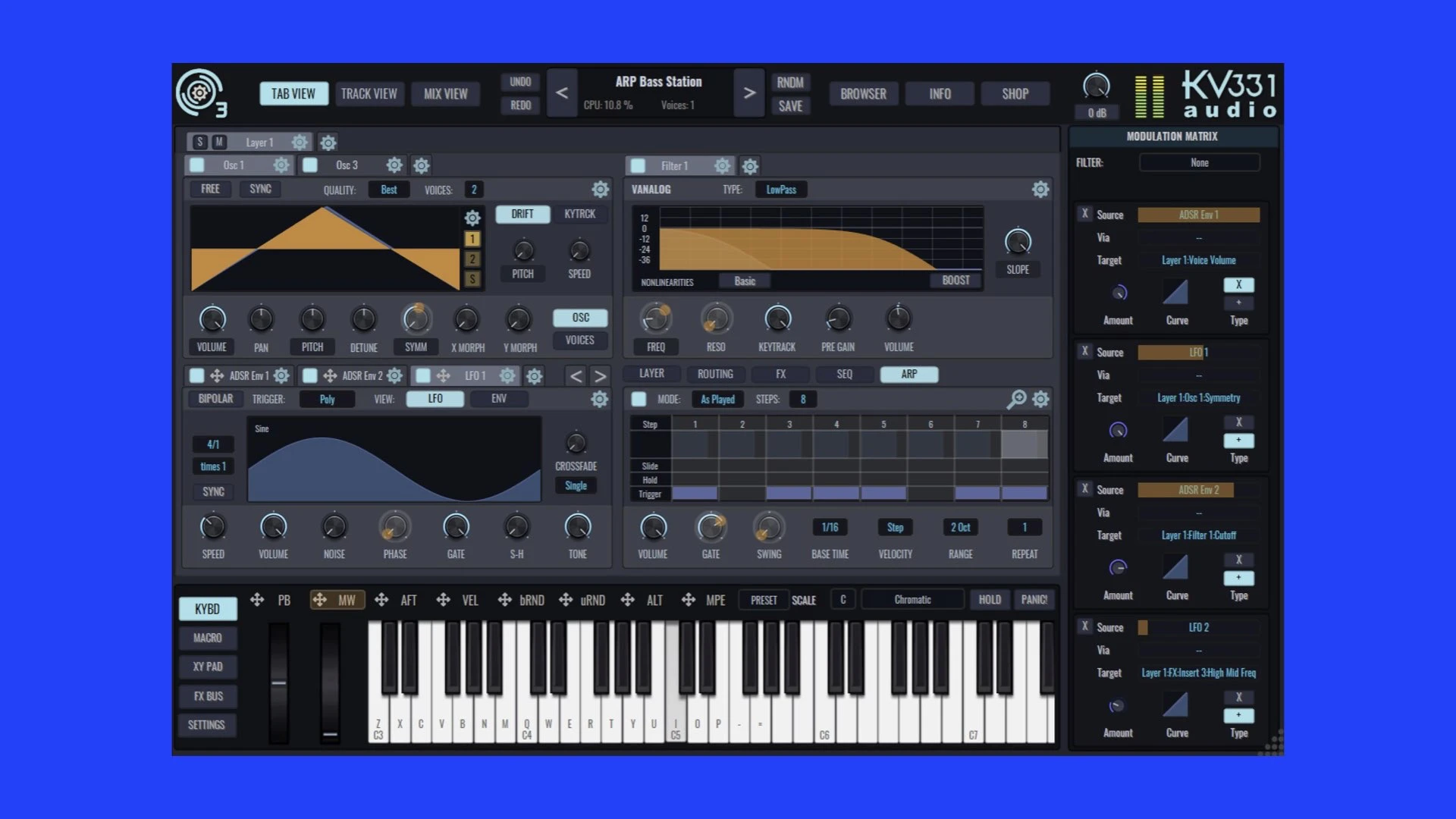 Further, it comes with an improved Keyscaler modulation source and a new noise LFO modulation source. Features you know and love from Synthmaster 2 are still available in SM3, including all the oscillator and filter types, modulation engine, and more.