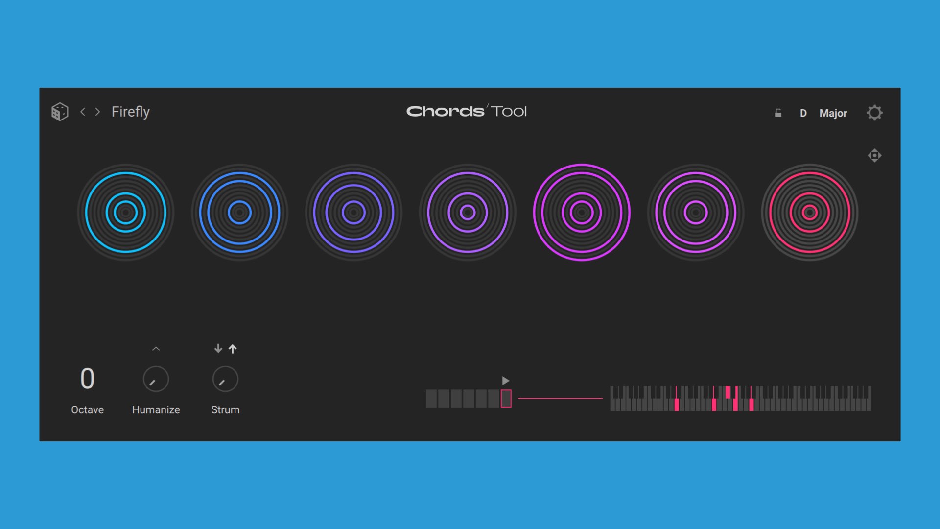 Chords is a nifty chord generator that lets you fire chord sequences with a key press. Also, with a possible swing option. The idea is a bit like Plugin Boutique Scaler 2 but in smaller factor. It also allows you to play chord notes offset, apply a humanize, and work with a guitar-like strum tool.