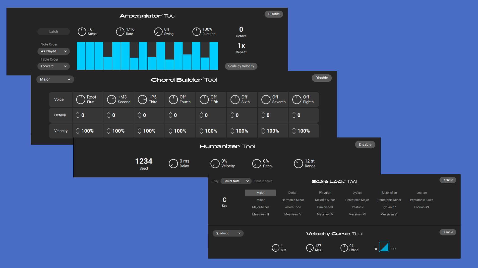 Kontakt 8.6 also comes with three other tools, including a new humanizer, a scale look, and a velocity curve tool. Another highlight of the new update is the ability to finally use multiple tools simultaneously.