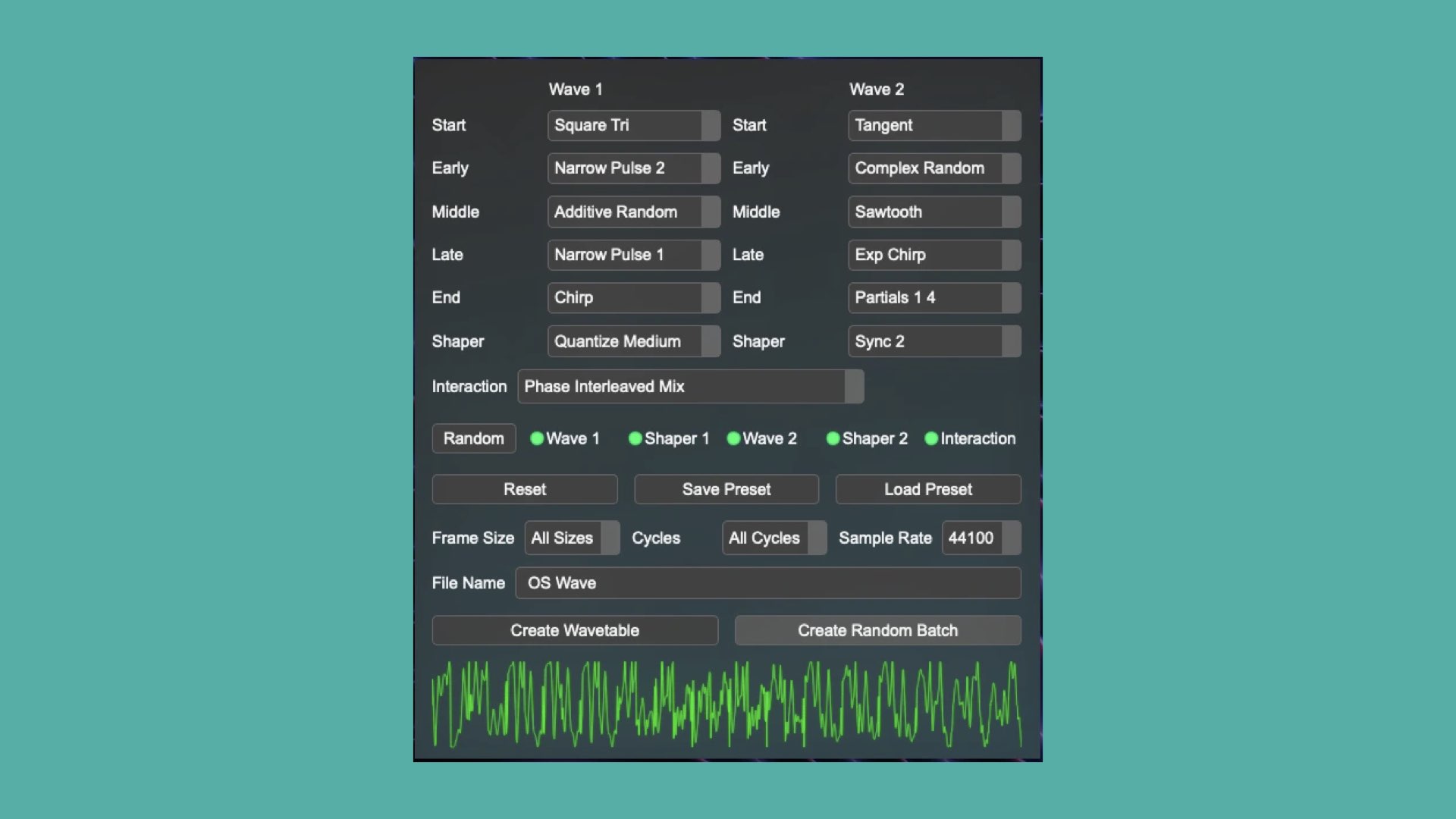 Further, you can work with a batch and random processing function that simultaneously export multiple created or controlled-random wavetables to speed up your creative process.