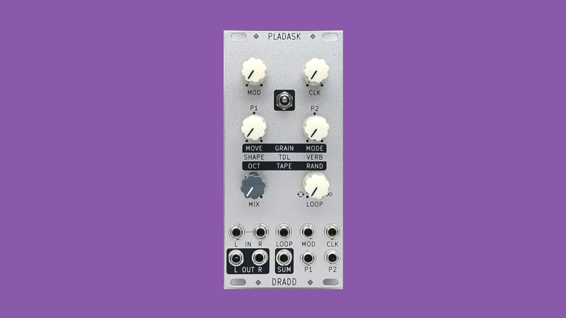 Pladask Elektrisk Stereo Dradd is a Eurorack module and so it also offers modulatable connectivity. Alongside the new stereo I/O, you have CV inputs for loop, mod, clock, and for the two parameters. New on the stereo is a sum output.