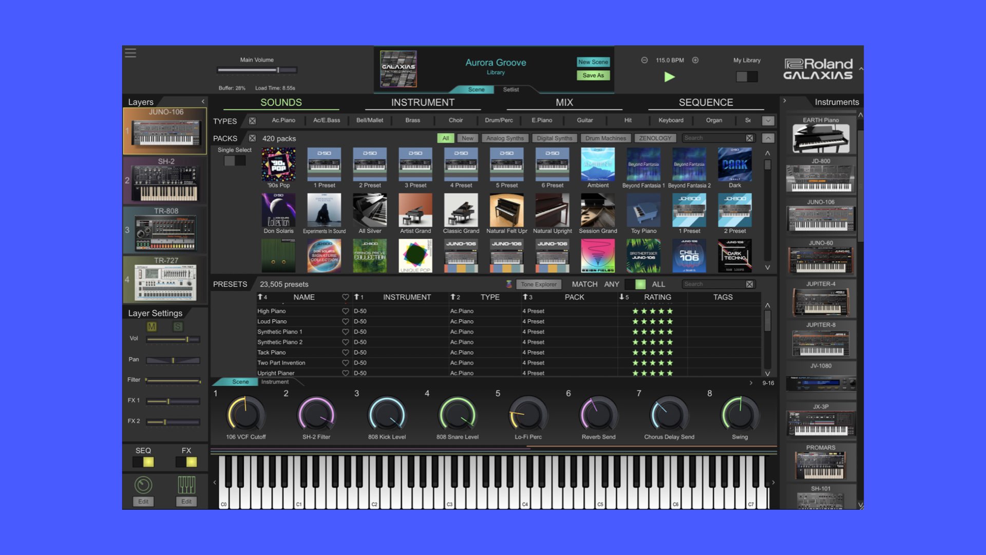It currently has over 50 virtual instruments and over 20.000 sounds that you have full access to. With GALAXIAS, Roland is now bringing together its versatile cloud architecture in one multi-layer virtual instrument.