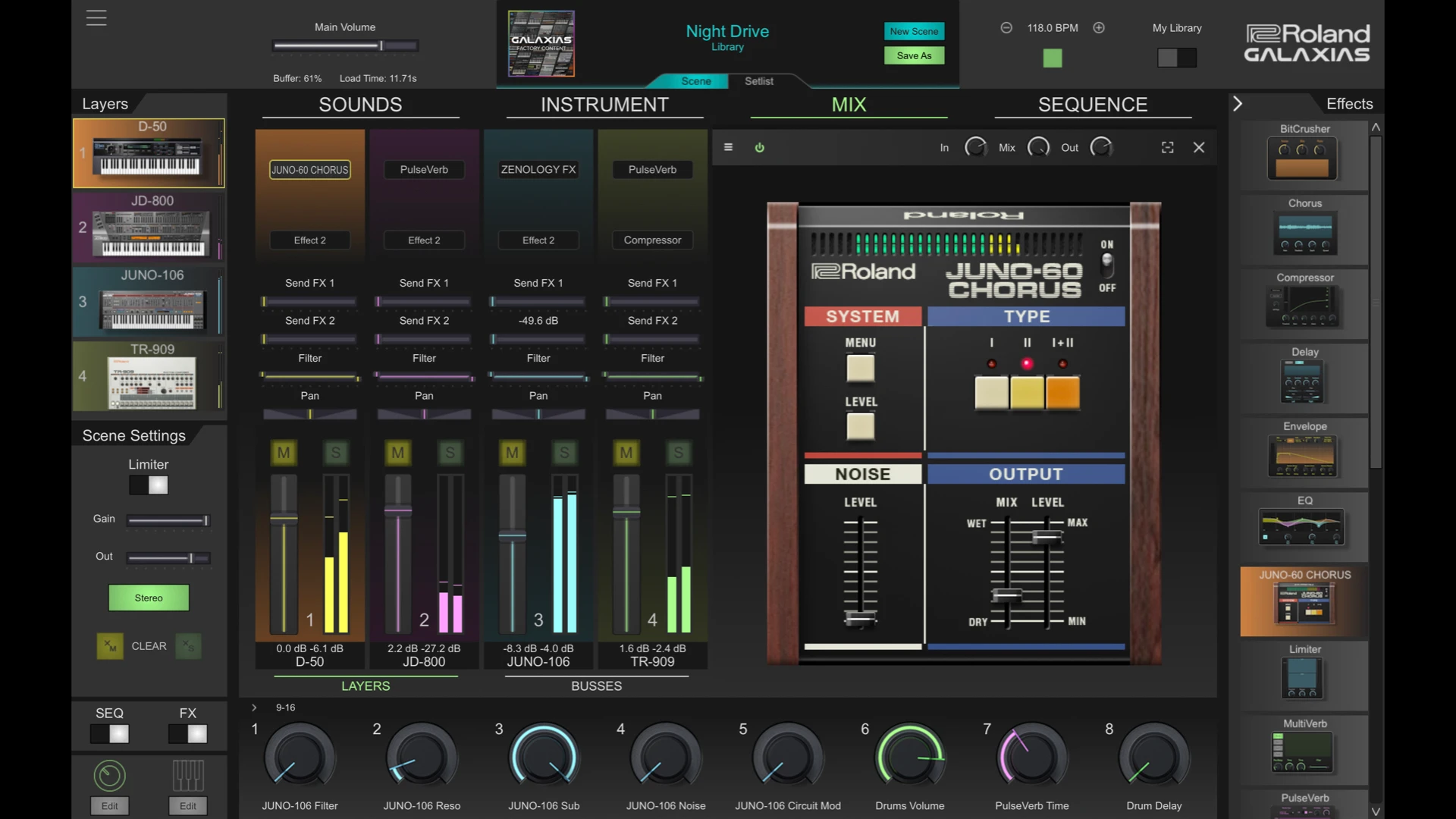 Everything is logically organized, making it simple to go deep and quickly translate ideas into great-sounding tracks. Users can delve into a single instrument layer, tweak the complete set of parameters, and get the experience of using the original hardware with Roland’s classic instrument plug-ins.