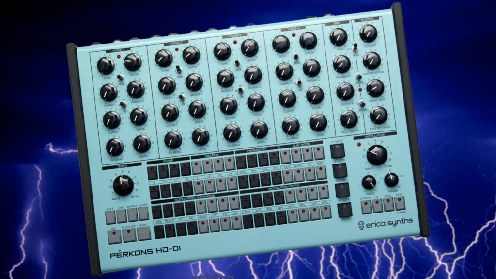 Erica Synths Perkons HD-01 is a powerful hybrid drum Synthesizer with a beefy sound that struck like thunder; new 1.2 update is out now.