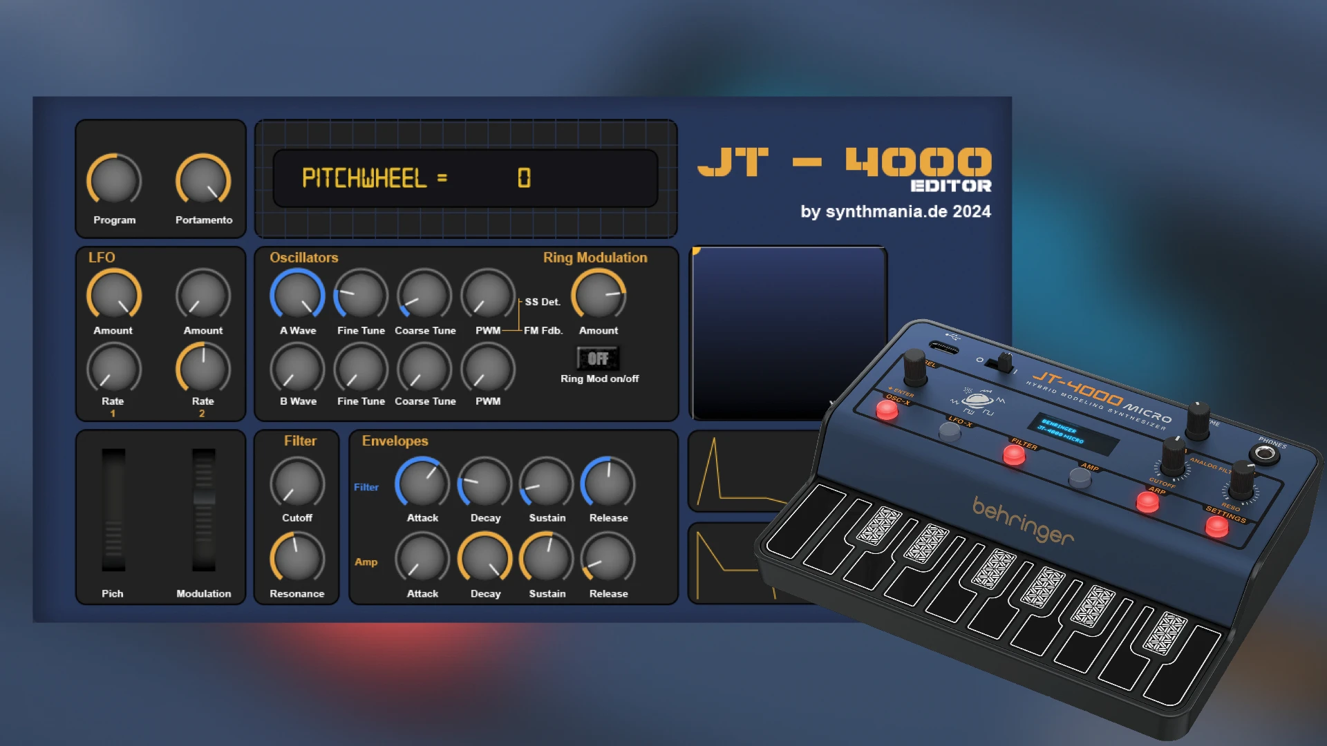 Synthmania, a German synth blog, has published a free standalone editor for the 49€ Behringer JT-4000 micro hybrid Synthesizer.