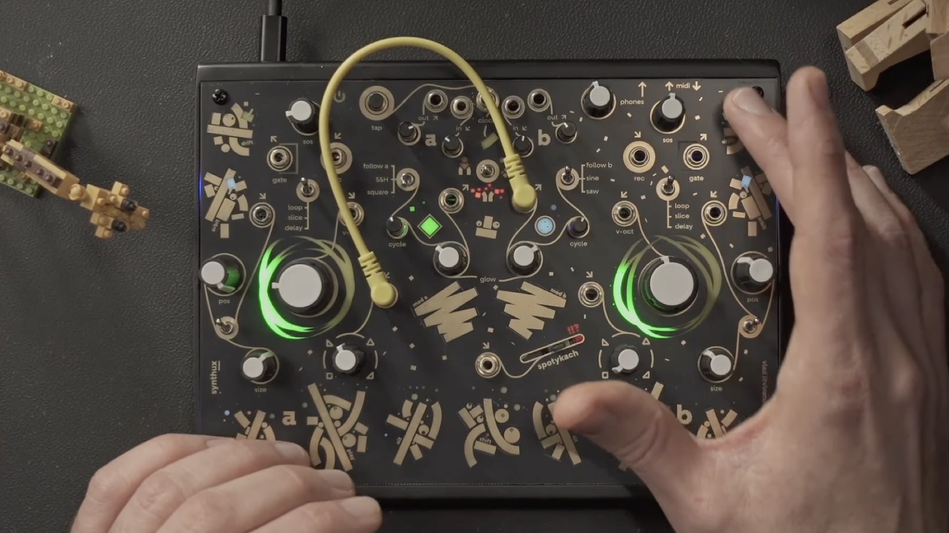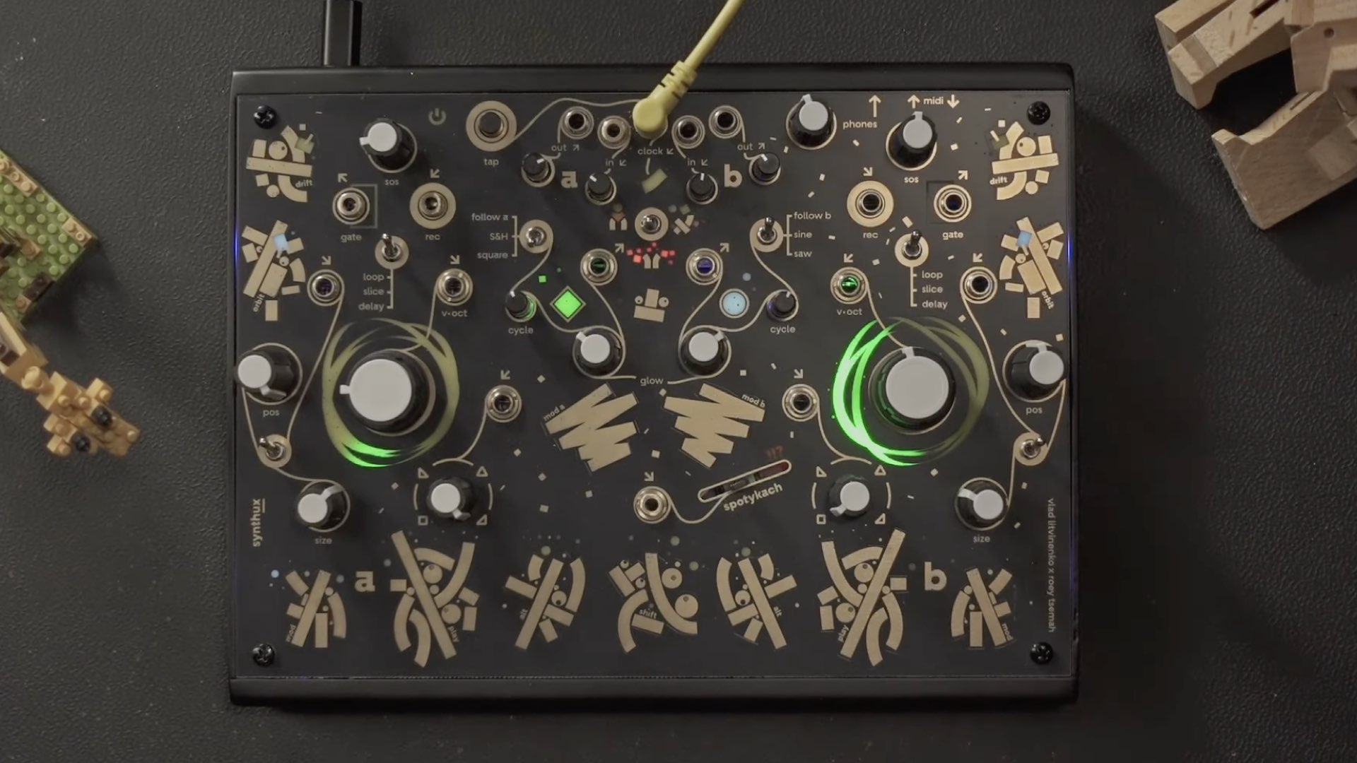 Synthux Academy Spotykach is an upcoming hands-on playable dual looper device with creative features and full-CV control.