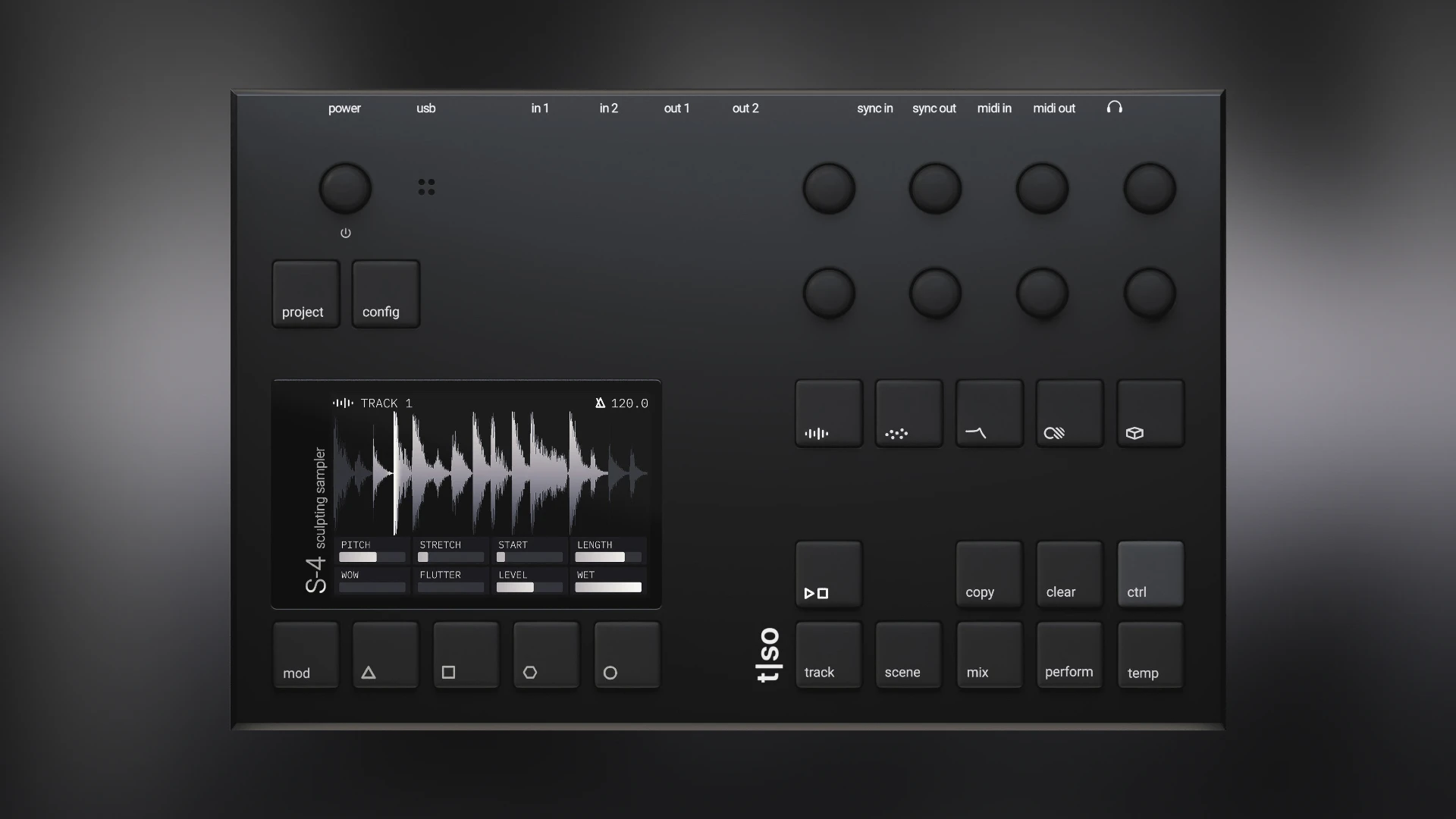 Then Temp brings performance functionality with temporary control of all parameters. When temp is enabled, Torso Electronics S-4 saves the initial state and snaps