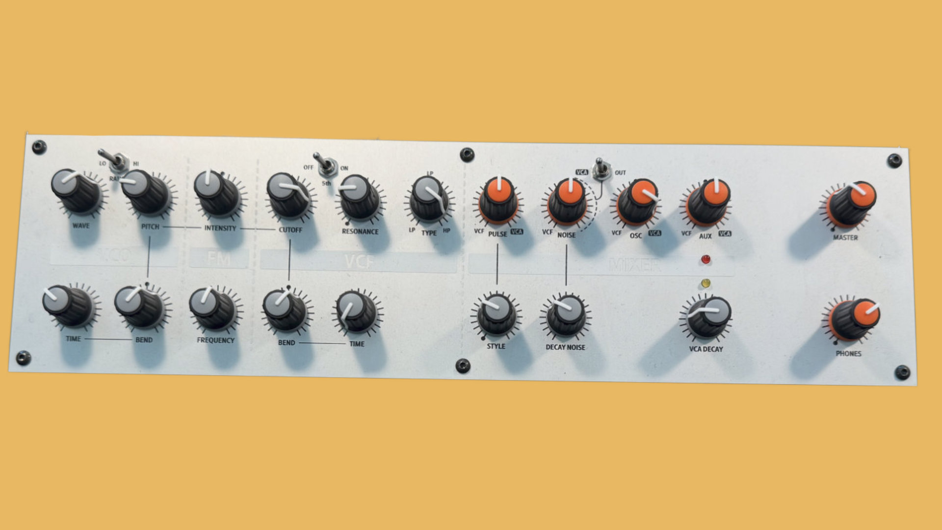 The core of the Veroma DrumDing is an analog drum voice, consisting of a VCO, FM, multimode VCF, mixer with envelopes, and a master section. According to the developers, the circuit is partly based on the popular Vermona DRM1 Mk4 drum machine.