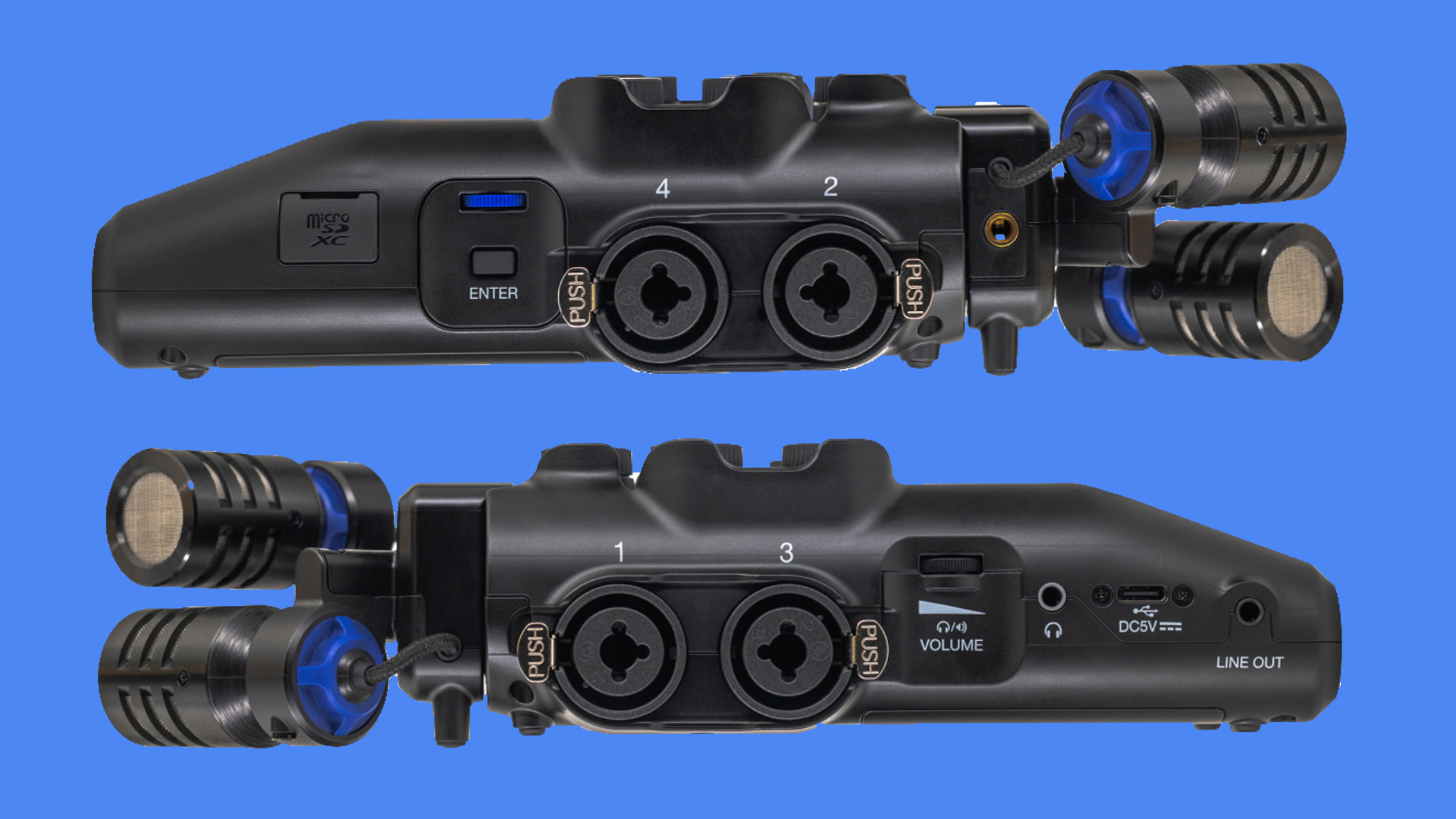 Like the previous Zoom H6, it operates on 4 AA batteries for up to 15 hours of recording, or you can power it through USB-C. Other notable features: